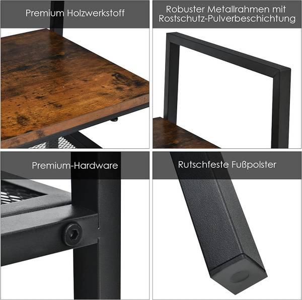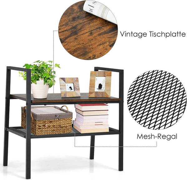 【Industrial Style】Das klassische Design aus Holz und Metall versprüht industriellen Charme. Die oberste Schicht ist aus Holzwerkstoff mit äußerer unregelmäßiger Maserung gefertigt, und die zweite Schicht ist ein Metallgitterregal, das eine Art hervorragende Verzierung darstellt. Es kann den Rest Ihrer Möbel ergänzen und Ihre Wohnkultur aufwerten.