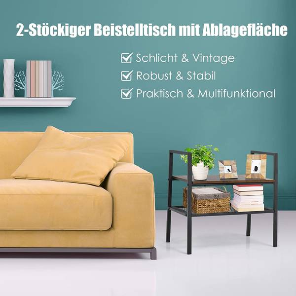 【Einfach zum Montieren & zum Reinigen】Ausgestattet mit einer Bedienungsanleitung mit intuitiven Bildern können Sie den Beistelltisch in kurzer Zeit schnell aufbauen. Mit einer glatten Holzoberfläche und einem Regal aus Metallgitter lässt sich dieser Tisch mit einem weichen Tuch leicht zu reinigen und bequem zu entwässern.