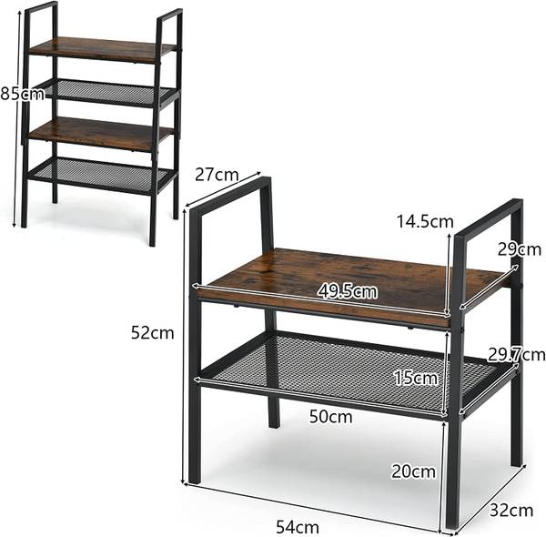 【Viel Stauraum】Dieses Lagerregal ist mit 2 Ebenen, einem Holzregal und einem Metallgitterregal ausgestattet, das praktisch ist, um genügend Platz für Kleinigkeiten, Ornamente, Schuhe oder Küchenutensilien zu bieten. Und das offene Aufbewahrungsdesign fördert die bequeme Entnahme von gelagerten Gegenständen mit Leichtigkeit.
