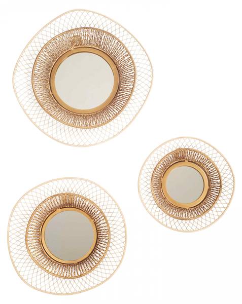 Wie wäre es, Ihrem Interieur eine maritime und organische Note zu verleihen? Mit diesem Set aus 3 Metallspiegeln LAWI können Sie Ihrer Dekoration einen neuen und originellen Stil verleihen! In einem engen Flur bringen sie nicht nur Praktikabilität, sondern auch Tiefe. Bereit für einen letzten Kammstrich oder Lippenstift, bevor Sie Ihr Zuhause verlassen? Sie können sie auch in einem Schlafzimmer oder Wohnzimmer platzieren. Schaffen Sie schöne Kontraste, indem Sie sie an dunkel getönten Wänden befestigen. Ihre beige und goldene Oberfläche passt perfekt zu einem ultramarinblauen oder terrakottafarbenen Hintergrund. Je nach Anordnung werden Licht- und Schattenspiele Ihren Raum durchfluten. Sie können diese drei Spiegel mit allen Möbeln kombinieren, unabhängig von ihrem Stil. Sie erhalten ein schickes und elegantes Design, von dem Sie nicht genug bekommen werden. Ihre Gäste werden die abgerundete und luftige Form ihres Rahmens bewundern, die Ihrem Interieur im Handumdrehen Wärme und Eleganz verleiht! Was halten Sie von dem organischen Touch, den dieses Spiegelset mit sich bringt?