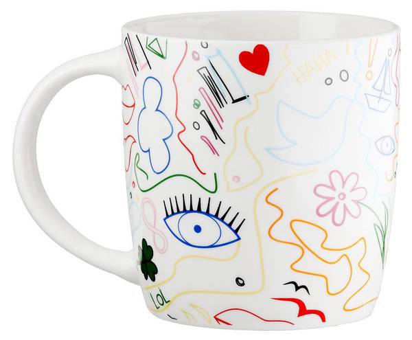 Design: Abstraktes, mehrfarbiges Motiv mit fröhlichem Sonnenmotiv im Inneren