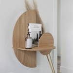 Bestehend aus 3 flachen Sperrholzstücken und einer Metallhalterung, die an der Wand befestigt wird. Die Anordnung dieser Teile im Raum verleiht dem Produkt die Möglichkeit, Gegenstände hinter den vertikalen Teilen zu verbergen, da zwischen ihnen eine Trennung besteht. In der Nachttischversion (L) haben wir hinter dem Unterteil eine Rückwand, die es uns ermöglicht, größere Gegenstände wie Bücher, Tablets usw. zu verstecken. Außerdem gibt es im Sockel ein verstecktes Loch, das uns das Essen ermöglicht Das Kabel zum Aufladen unserer Geräte.