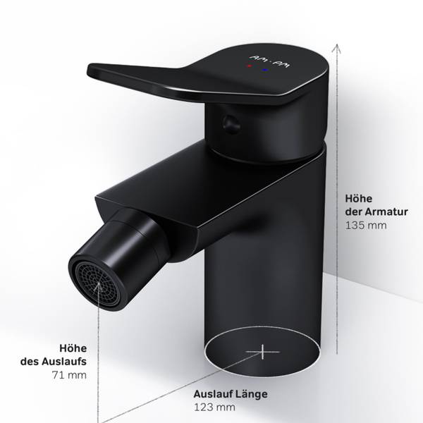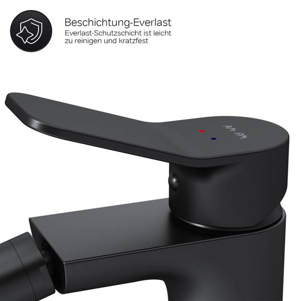 • Hochwertige Bidetarmatur aus Messing mit schwarzmatter Oberfläche. Die Oberfläche ist leicht zu reinigen und schützt vor Rost.