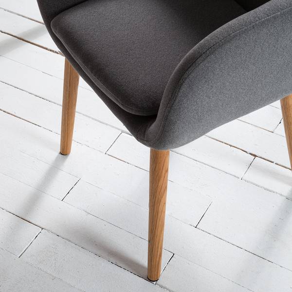 - Der Polsterstuhl mit einem hochwertigen Filzstoff steht auf schlanken und hochwertigen Beinen aus massivem Eichenholz.