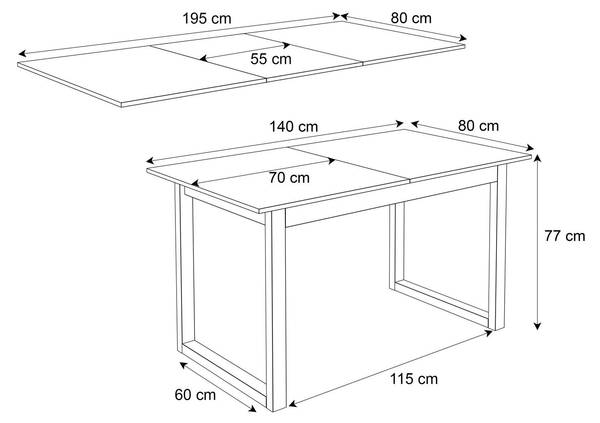 - der Tisch lässt sich bis zu einer Breite von 195 cm ausziehen - perfekt, um bequem Platz für 6 Personen zu schaffen,