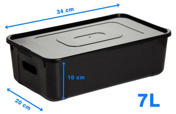 TECHNISCHE DATEN - Farbe: schwarz; Material: Kunststoff; Fassungsvermögen: 7 L; Höhe: 10 cm; Länge: 34 cm; Breite: 20 cm.
