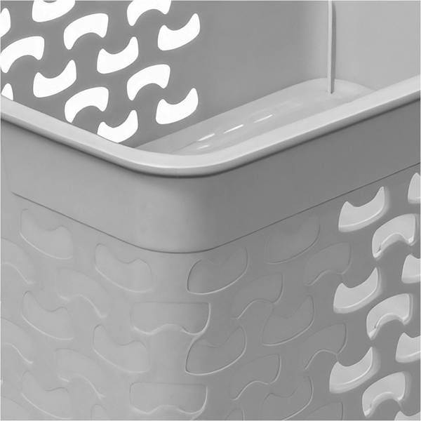 Der hellgraue Farbton und das geometrische Muster sorgen für einen ästhetisch ansprechenden, modernen Look. Der Korb fügt sich perfekt in minimalistische Innenräume ein und ist unauffällig - ideal für den Gebrauch zu Hause und im Büro.
