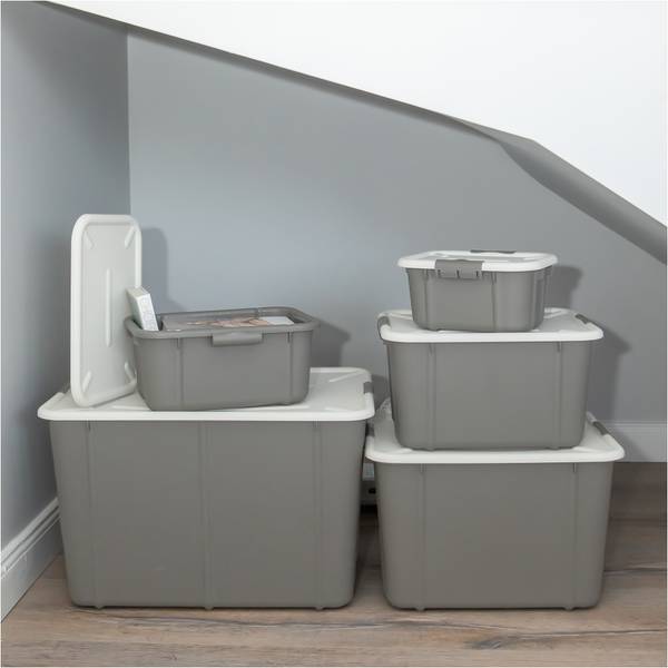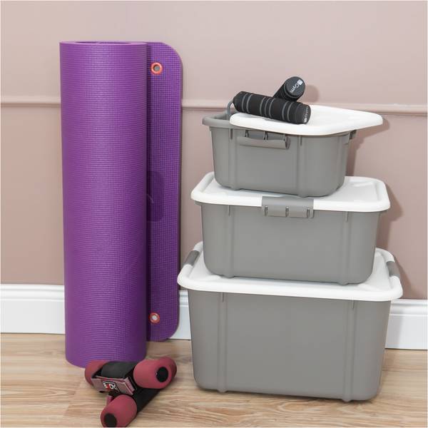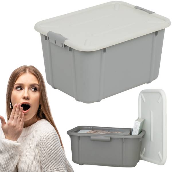 Kunststoffbox Container 16 L Kunststoff abschließbar mit Deckel Box Aufbewahrungsbox für Spielzeug Schmuck Kleidung Hellgrau