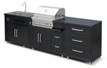 Merkmale des 3-Schubladen-Elements: 3 Schubladen mit Soft-Close-Auszügen; 100 % Edelstahl mit robuster, korrosionsbeständiger Pulverbeschichtung; verstellbare Füße zum Ausgleich von Bodenunebenheiten.