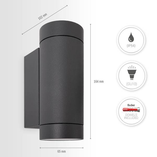 - DIE OPTIK – Diese Outdoor-Wandleuchte kommt in klassischen Farben wie Weiß, Anthrazit oder Silber-Grau daher und strahlt ihr Licht nach oben und unten.