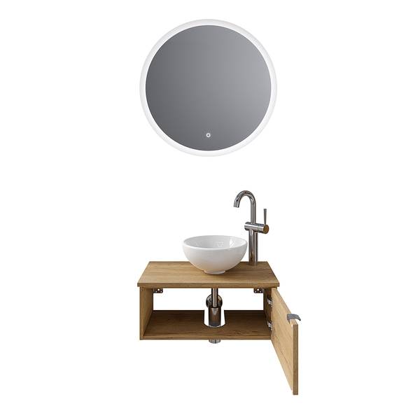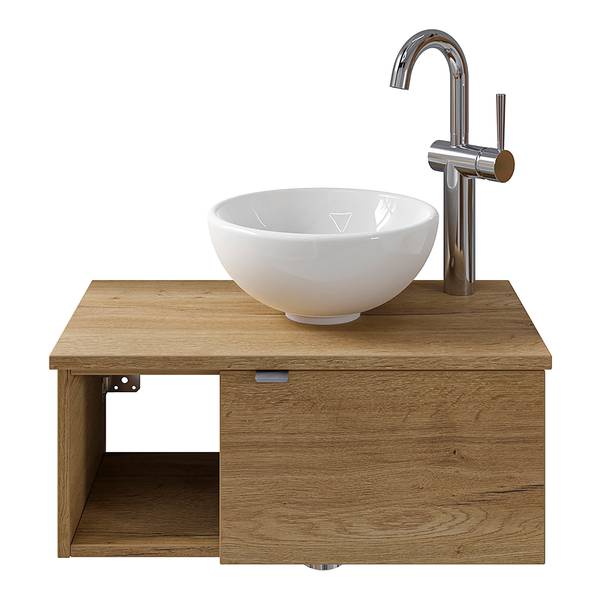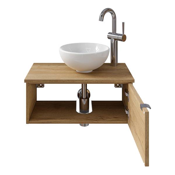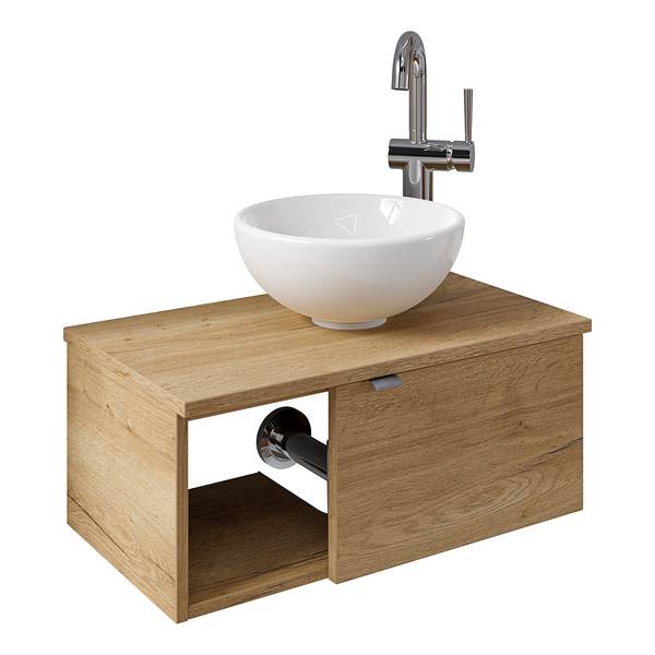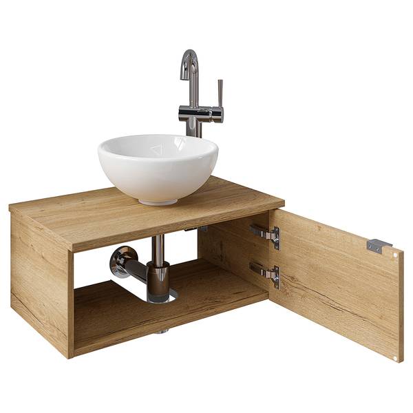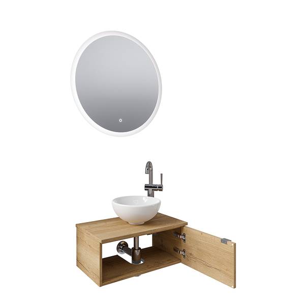 - Lieferumfang: Bad-Block bestehend aus Keramik-Aufsatzbecken ohne Armatur, Funktionsspiegel