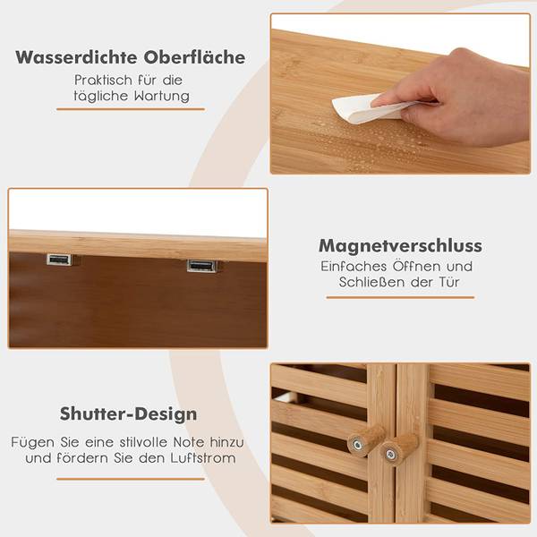 - 【Solide Struktur und hochwertiges Bambusmaterial】 Dieser Badezimmerschrank aus hochwertig verarbeiteter Bambusstruktur mit wasserfester Lackierung lässt sich nicht leicht verformen und kann Ihre Familie über die kommenden Jahre begleiten. Darüber hinaus trägt das Lamellendesign zu einer guten Luftzirkulation bei.