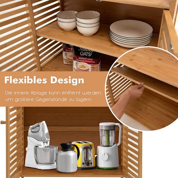 - 【Multifunktionaler Schrank】 Abgesehen von der Verwendung im Badezimmer kann dieser praktische freistehende Bambusschrank auch als Küchenschrank dienen, um Mikrowelle, Geschirr oder Gläser aufzubewahren; oder als Beistelltisch im Wohnzimmer, um Ihre Bücher, Dekorationen und Fotos gut organisiert aufzubewahren.