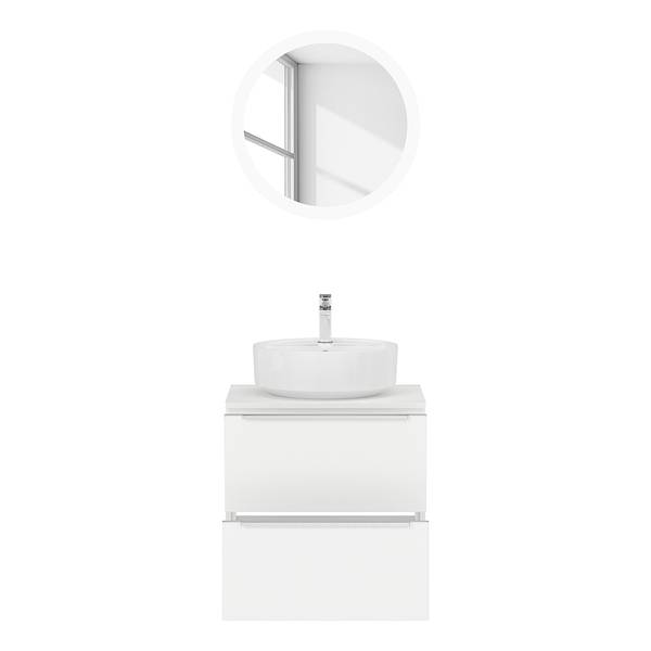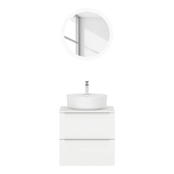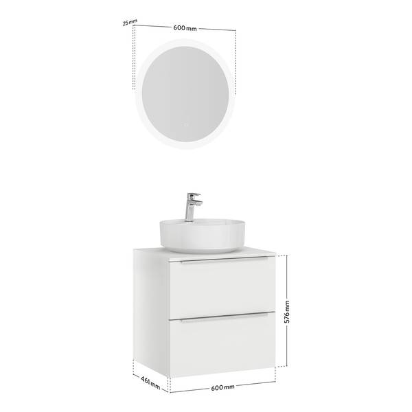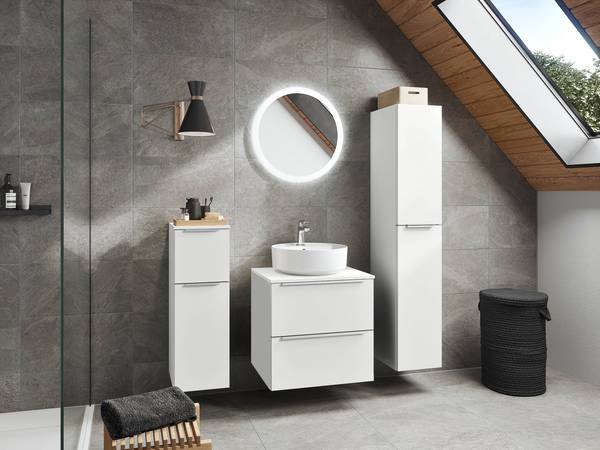 - Lieferumfang: Badezimmerset bestehend aus 1 Waschtisch inklusive Keramikbecken & 1 Flächenspiegel mit horizontalem LED-Lichtfenster