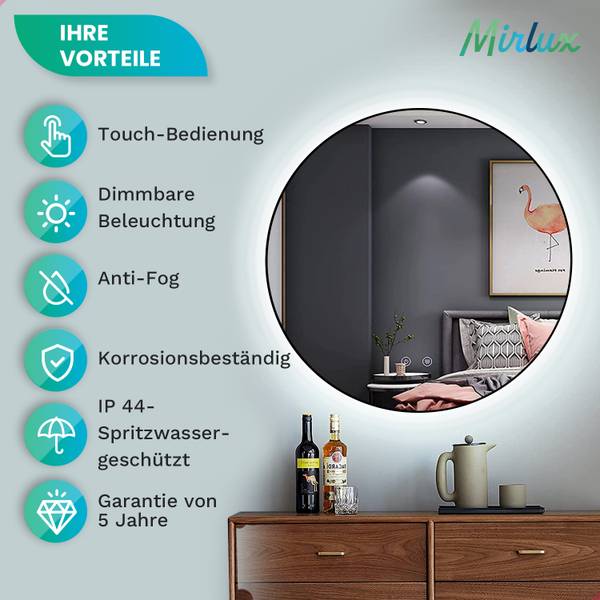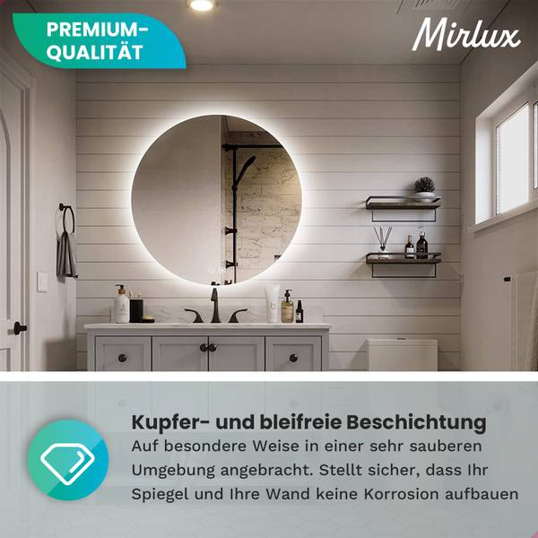Der Mirlux Badezimmerspiegel ist mit den fortschrittlichsten Technologien ausgestattet. Auf diese Weise wissen Sie, dass Sie ein Qualitätsprodukt gekauft haben und dass Sie lange Freude an Ihrem neuen Spiegel haben werden.