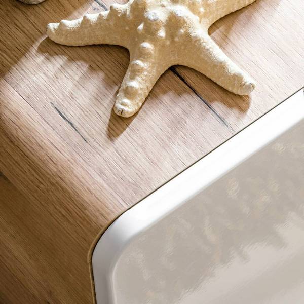 Korpus: E1-Qualitätsspanplatte, melaminbeschichtet Wotaneiche Nb.