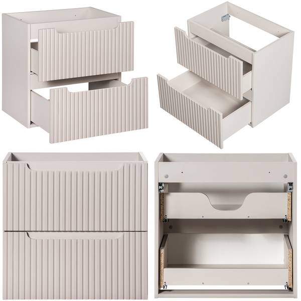 1 Waschtischunterschrank mit 2 Schubladen, Rückwand des oberen Schubkasten mit Siphonausschnitt, mit offener Rückwand, B/H/T ca. 60/57/39 cm