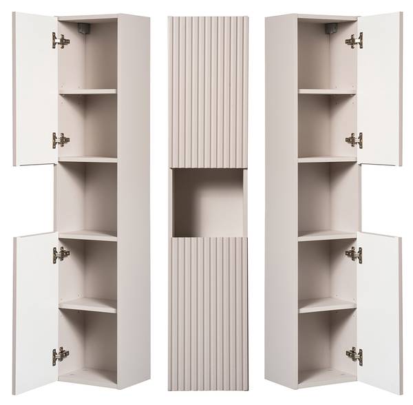 1 Hochschrank mit 2 Türen (rechts/links montierbar), 2 Einlegeböden, 1 offenes Fach, B/H/T ca. 30/140/25 cm