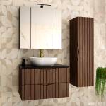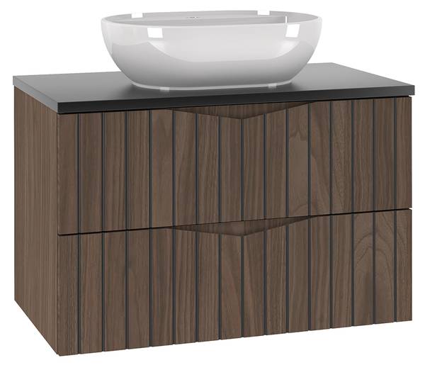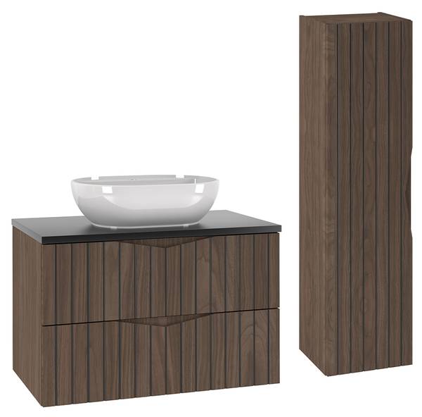 Holz in Walnussoptik und schwarzer Waschtisch