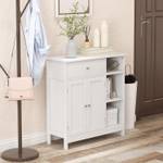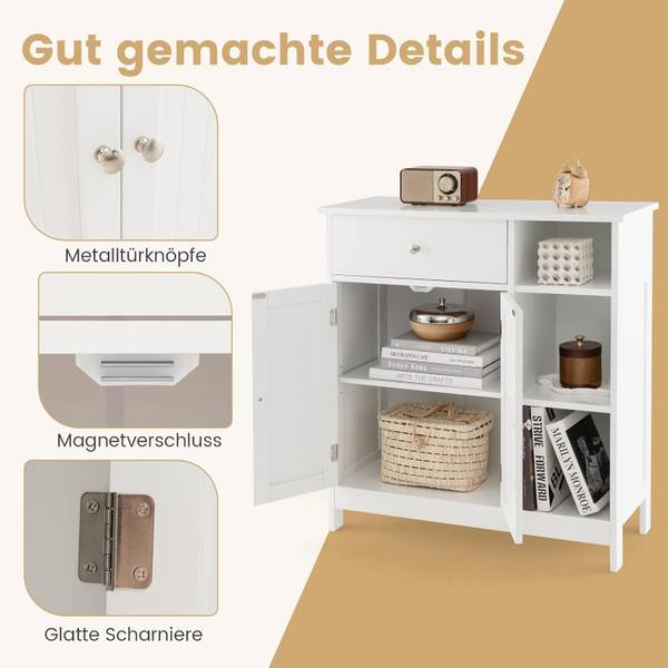 Dieser freistehende Badezimmerschrank kombiniert offenen und verdeckten Stauraum, um Ihren unterschiedlichen Aufbewahrungsbedürfnissen gerecht zu werden, darunter eine große Schublade, einen Schrank und 3 offene Ablagefächer. Darüber hinaus ist das Regal im Inneren des Schranks dreifach höhenverstellbar, sodass es für Gegenstände mit unterschiedlichen Höhen geeignet ist. Aus Sicherheitsgründen ist dieser Schrank mit einer Schubladenführung aus Metall und einer Kippsicherung ausgestattet, um Kinder vor unnötigen Unfällen zu schützen.