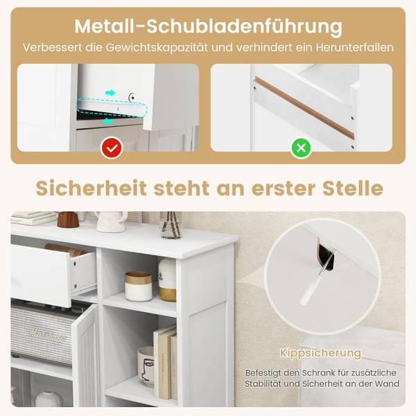 - 【Sicherheit steht an erster Stelle】Die Metallschublade verbessert die Tragfähigkeit und verhindert, dass die Schublade herunterfällt, wenn der Schrank umkippt. Darüber hinaus können Sie den Schrank für zusätzliche Stabilität und Sicherheit mit der mitgelieferten Kippsicherung an der Wand befestigen.