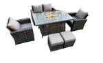 - Lieferumfang: 1*Doppelsofa,2*Stuhl,1*Gas Feuertisch,2*Kleiner Hocker