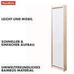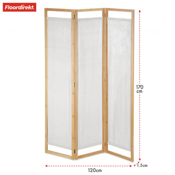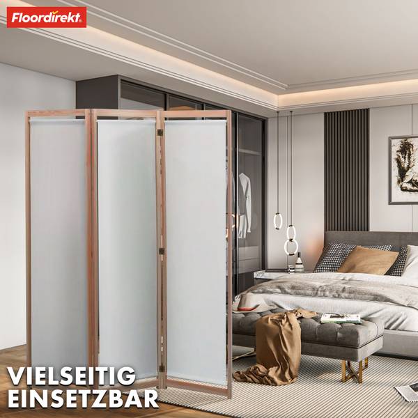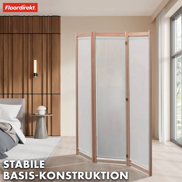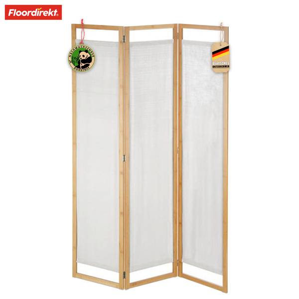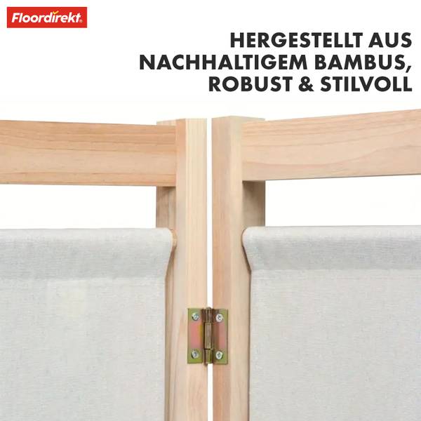 Der 3-teilige, faltbare Raumteiler ist besonders platzsparend und lässt sich bei Bedarf schnell und einfach aufstellen. Wenn er nicht gebraucht wird, kann er mühelos zusammengefaltet und verstaut werden – eine ideale Lösung für kleinere Räume oder flexible Raumgestaltungen. Dank des stabilen Rahmens aus umweltfreundlichem Bambusmaterial ist die Trennwand robust und bietet eine hohe Standfestigkeit. Bambus ist nicht nur nachhaltig, sondern auch extrem langlebig und pflegeleicht, sodass die Trennwand Ihnen über Jahre hinweg Freude bereitet.