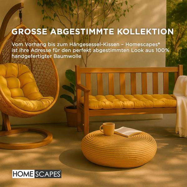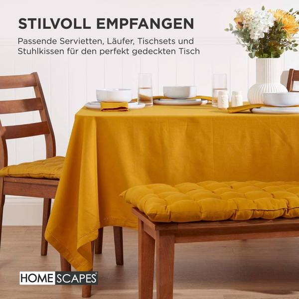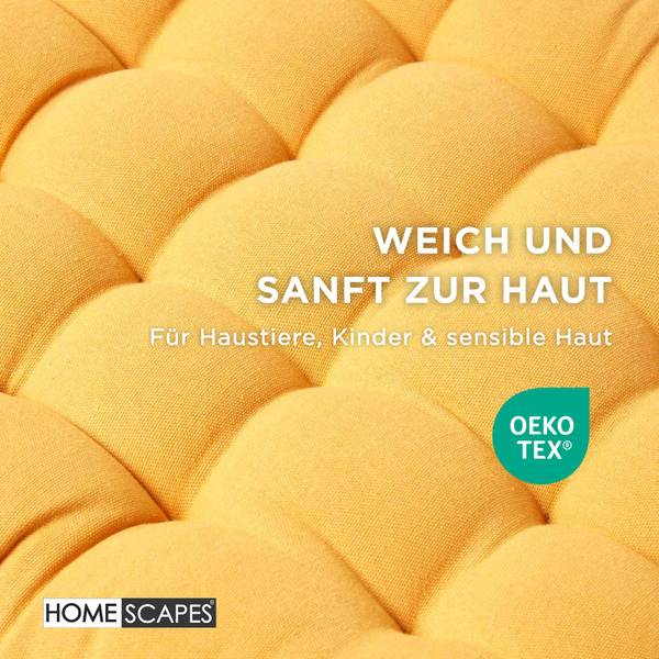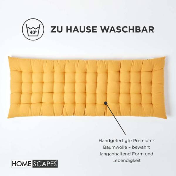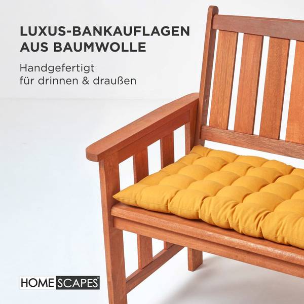 Verleihen Sie Ihrer Sitzbank mit der Bankauflage in Senfgelb von Homescapes eine Extraportion Komfort und Stil. Die schlichte Eleganz macht sie zu einer attraktiven Ergänzung für verschiedene Wohnstile – ob auf der Küchenbank, im Essbereich, im Wintergarten oder auf der Terrasse. Auch auf der Hollywood-Schaukel, der Gartenbank oder in der Leseecke sorgen die bequemen Bankpolster für ein angenehmes Sitzgefühl.