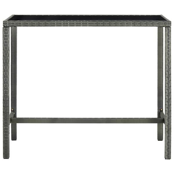 Dieser Stehtisch verfügt über einen pulverbeschichteten Stahlrahmen, der mit wasserbeständigem PE-Rattan überzogen ist und jahrelangen Einsatz im Freien gewährleistet. Darüber hinaus erleichtert die Tischplatte aus gehärtetem Glas die Reinigung. Die Barhocker haben eine stabile Stahlrahmenkonstruktion und sind aus wetterbeständigem PE-Rattan gefertigt, das für Stabilität sorgt und sich leicht bewegen lässt. Das Sitzkissen und die eingebaute Fußstütze sorgen für zusätzlichen Sitzkomfort des Barhockers.