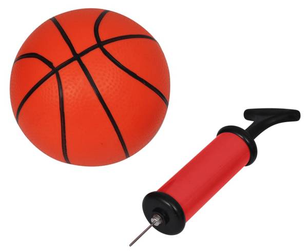 Zu dem Lieferumfang gehören 1 x Korbbrett, 1 x Basketballring, 1 x Basketballkorb, 1 x Ball und 1 x Pumpe.