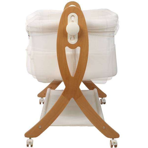 Es ist praktisch für zuhause mit der Besonderheit einer Schwingfunktion des Bettkorbs, mit welcher Sie Ihr Kind behutsam in den Schlaf schaukeln können. Auch das Design ist durchdacht und besticht durch das Buchenholz- Untergestell.