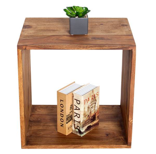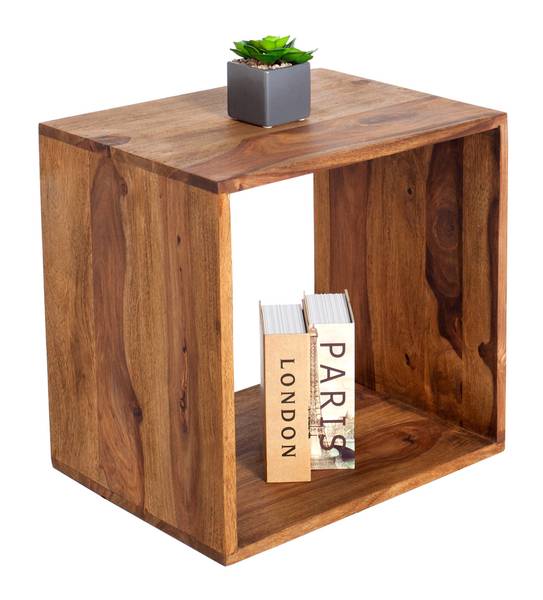 Das Hartholz ist besonders stabil und unempfindlich, der Baum wächst selbst bei schwankenden Temperaturen und starken Niederschlägen. Diese Eigenschaften machen dieses Holz zu besonders langlebigen und wunderschönen Möbelstücken. Der massive Cube MAKASSAR aus Sheesham-Holz, dient nicht nur der Lagerung verschiedenster Gegenstände, sondern präsentiert diese mit Stil und Individualität.