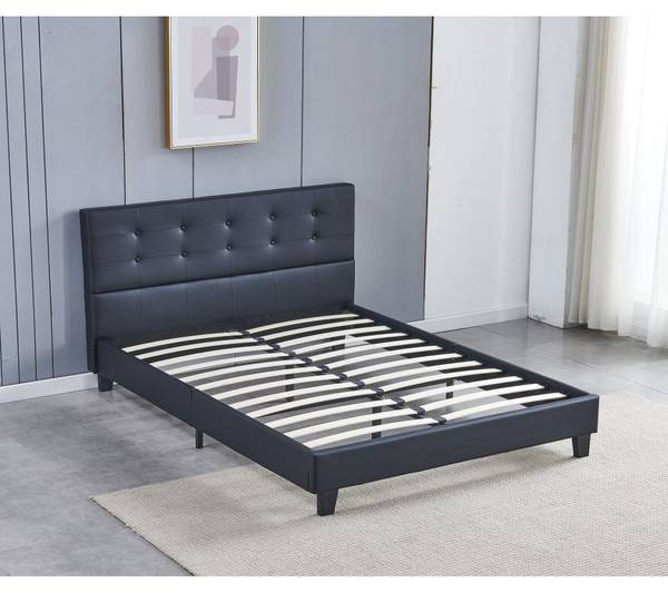 Unser Bett bringt mit Sicherheit einen Hauch von Modernität in Ihr Schlafzimmer. Sein gepolstertes und geknöpftes Kopfteil verleiht Ihrem Schlafzimmer eine gemütliche Wirkung. Das elegante Design dieses Bettes wird auch durch seine Kunststoffpolsterung geprägt. Die Stabilität des Bettes wird durch 4 stabile Beine gewährleistet und durch das Vorhandensein einer zentralen Querstrebe und 4 zusätzlicher Stützbeine unter dem Lattenrost verstärkt, letzteres ist im Lieferumfang enthalten.