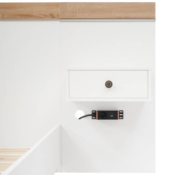 Die zeitlose Kombination aus Weiß und Naturfarbe passt zu allen Arten von Schlafzimmermöbeln. Die Schlafstätte begeistert mit ihrer Schwebeoptik, die durch weit nach innen versetzte Quertraversen entsteht. Dieses Bett ist eine stilvolle Ergänzung für Ihr Schlafzimmer, die nie aus der Mode kommt.