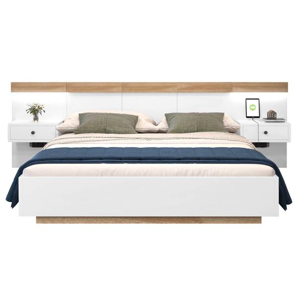 - Lieferumfang: 1 x Bettgestell + 1 x Lattenrost + 2 x LED-Nachttisch + 2 x Steckdose + 1 x Hardware-Paket + 1 x Installationsanleitung (Bettwäsche, Matratze und Dekoration sind nicht im Lieferumfang enthalten)