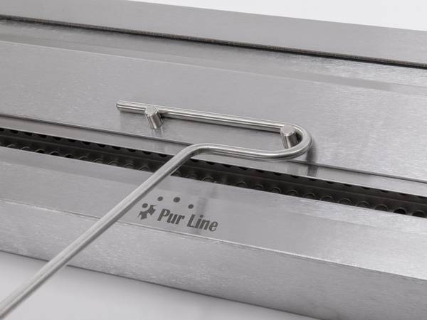 Es ist ein solider Verbrennungsblock, der mit einer doppelten Schicht aus rostfreiem Stahl und Keramikfasern im Inneren hergestellt ist, um ein sicheres Feuer zu garantieren. Durch die Öffnung des Deckels kann die Intensität der Flammen reguliert werden, so dass Sie die Atmosphäre nach Ihren Wünschen gestalten können, und wenn Sie das Feuer stoppen möchten, können Sie das Löschwerkzeug benutzen.