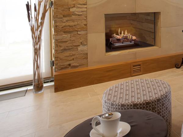 Sein Design besteht aus einem schwarzen Gitter, in das braune Keramikscheite gelegt werden, die ein sehr gelungenes Finish haben, das den Effekt von Holz simuliert, das im Feuer verbrennt. Sie können das Feuer auch kontrollieren, da Sie durch die Öffnung des Deckels die Intensität der Flammen regulieren können, und wenn Sie das Feuer stoppen wollen, können Sie das Löschwerkzeug benutzen.