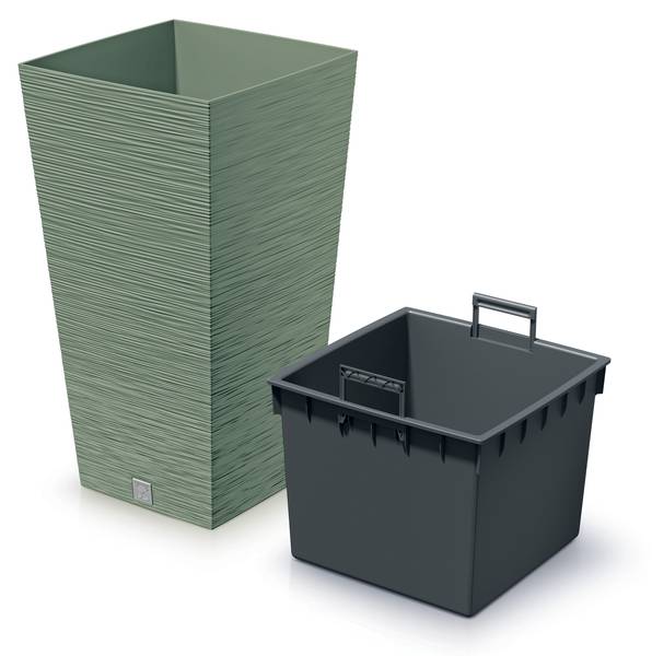 Der Furu-Topf ist eine Kombination aus Schlichtheit, Eleganz und modernem Design. Inspiriert von der Natur, insbesondere von Tannennadeln, besticht der Topf durch seine einzigartige Textur und die gedämpfte grüne Farbgebung. Aus stabilem Kunststoff gefertigt, ist er leicht, langlebig und wetterfest und eignet sich daher sowohl für den Innen- als auch für den Außenbereich. Dank des Abstandshalters ist der Topf auch praktisch, denn er reduziert die benötigte Menge an Erde und erleichtert die Pflege der Pflanzen.