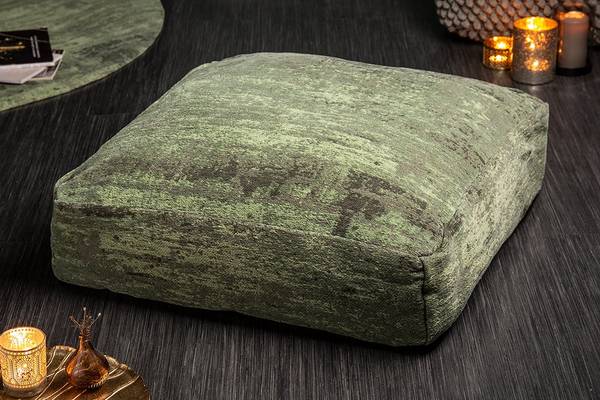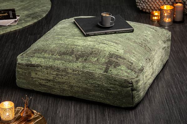 Mit diesem hochwertigen Bodenkissen zieht moderne Gemütlichkeit bei Dir ein. Das große Sitzkissen hat einen Bezug aus einem langlebigen Baumwoll-Gemisch mit einem zeitlosen, abstrakten Muster in Braun- und Grüntönen. Dabei wurde das Muster bewusst in einem authentischen Vintage Style gestaltet, sodass das große Kissen wie ein antikes Schmuckstück wirkt.