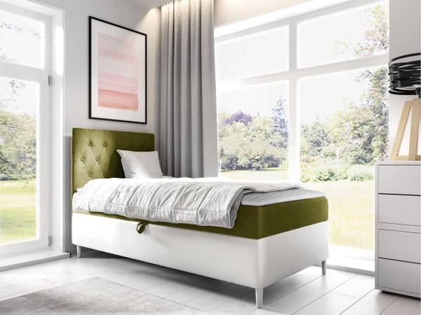 - Bett im Standard mit Bettkasten für die Bettwäsche. Durch Federn wird das Aufklappen erleichtert,