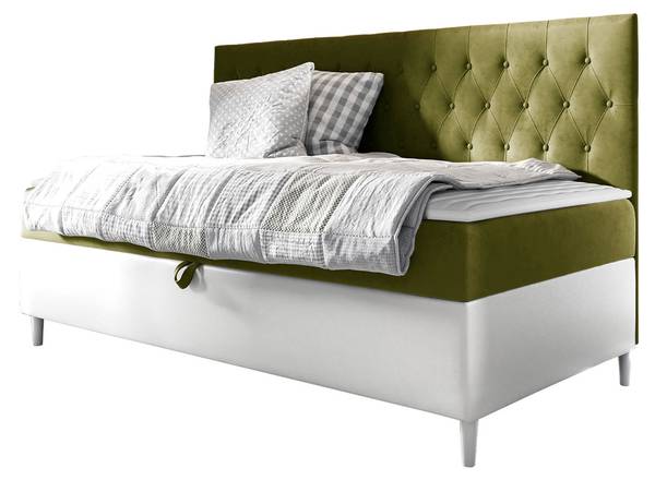 - Bett im Standard mit Bettkasten für die Bettwäsche. Durch Federn wird das Aufklappen erleichtert,