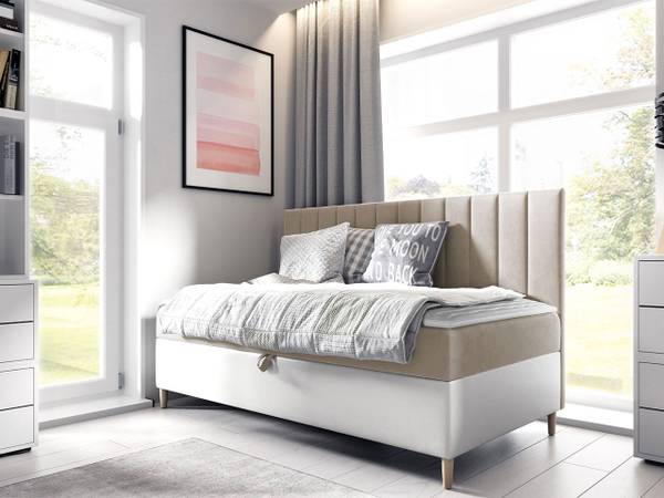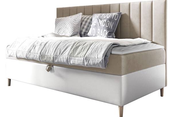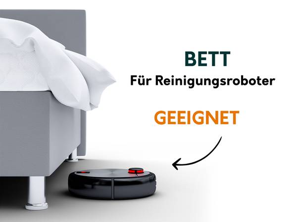 - Bett im Standard mit Bettkasten für die Bettwäsche. Durch Federn wird das Aufklappen erleichtert,