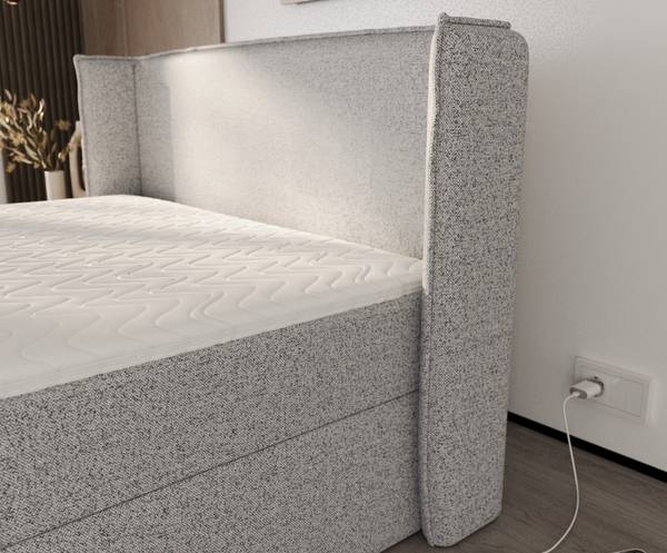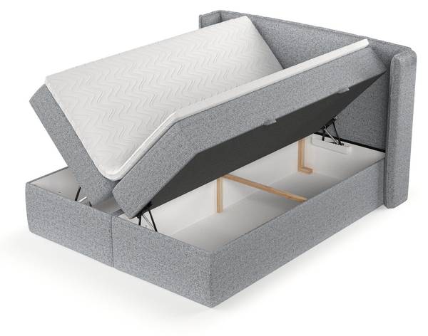 Das Bett VIVA ist mit einem seitlich zu öffnenden Bettzeugkasten ausgestattet, was es zu einer äußerst funktionellen Lösung macht, insbesondere in kleineren Räumen, wo jeder Zentimeter Stauraum zählt. Die solide Konstruktion sorgt für maximale Stabilität und Komfort, und die Belastbarkeit von 250 kg garantiert Sicherheit und Langlebigkeit.