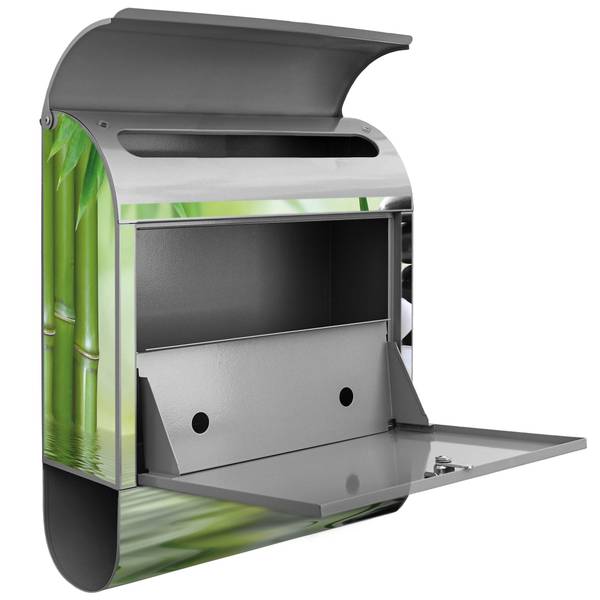 Der Postkasten personalisiert aus pulverbeschichtetem Stahl sind 38,5x46.5x13cm groß. Das Motiv besteht aus einer wetter- und UV-resistenten Folie, die mit einem Schutzlaminat überzogen ist. Montagematerial und zwei Schlüssel im Lieferumfang.