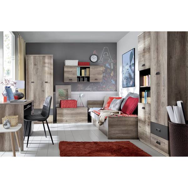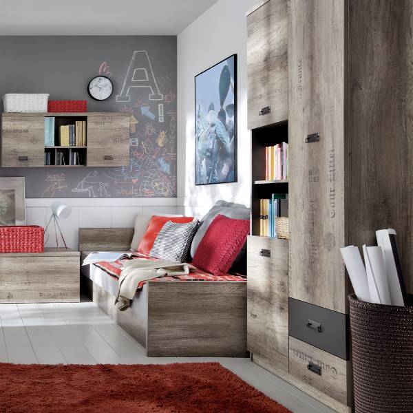 Holz in Eichenoptik mit Druck und grau