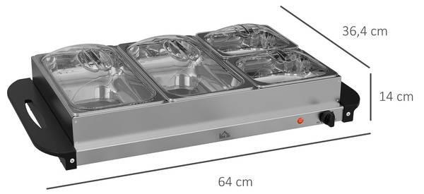● 2x 1L-Schalen und 2x 2,4L-Schalen: Buffetwärmer verfügt über vier Bereiche für verschiedene Speisen