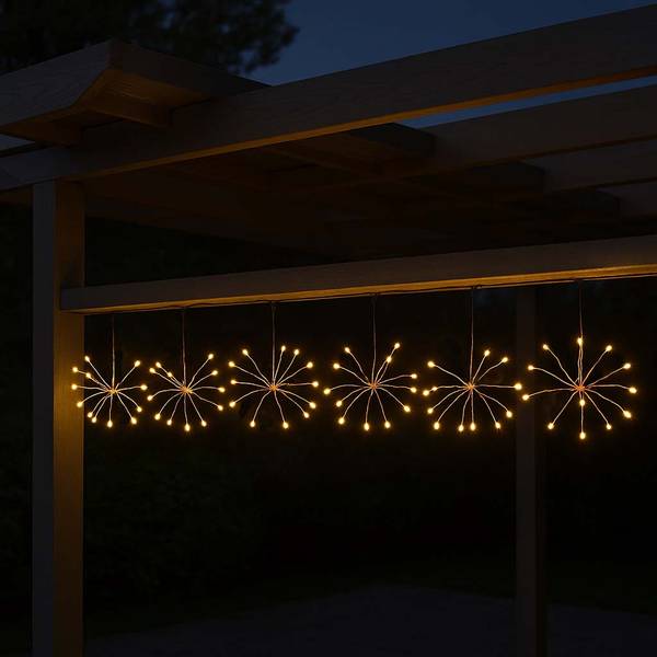 OUTDOOR / INDOOR: Nachdem Sie Ihre Lichterkette mit Sonnenenergie aufgeladen haben, können Sie diese Designgirlande überall im Outdoor- und Indoor-Bereich einsetzen. Die Fireworks String Light Girlande bringt eine trendige, originelle Dekoration in Ihr Zimmer und passt sich jeder Situation an.