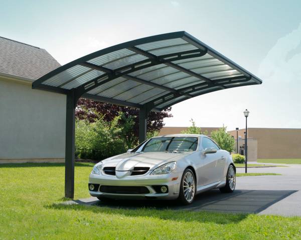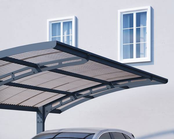 Canopia Arizona Wave Alu Carport 3X5 m Polycarbonat Der einzelne Carport Arizona Wave von Palram - Canopia wurde entwickelt, um Ihre Anforderungen an einen Unterstand im Freien zu erfüllen. Seine zweibeinige Form macht es leicht zugänglich und passt wie eine Balkonabdeckung. Es bietet Schatten und Schutz, egal wofür Sie es verwenden. Das einzigartige Design für Bogenparkplätze setzt Maßstäbe. Der Rahmen und die Überdachung wurden entwickelt, um rauen Wetterbedingungen standzuhalten. Die Polycarbonatplatten blockieren schädliche UV-Strahlen und der Aluminiumrahmen ist auf Langlebigkeit ausgelegt. Das Arizona Cantilever Carport Kit bietet Ihrer Familie eine elegante, langlebige, wetter- und rostbeständige Überdachung, die über Jahre hinweg wartungsfrei ist.