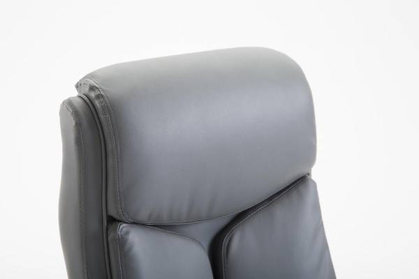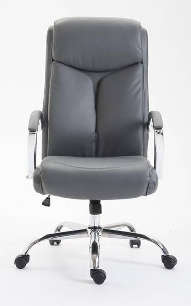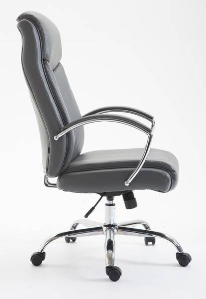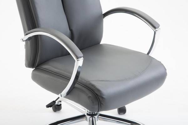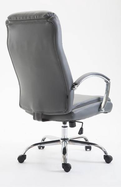 Der XL Bürostuhl Vaud ist ideal für große und schwere Personen geeignet, da die Gasdruckfeder auf einen dauerhaften Gebrauch bis zu 140 kg ausgerichtet ist. Es handelt es sich um einen Bürostuhl mit hochwertiger Polsterung und Kunstlederbezug. Kunstlederbezüge haben den Vorteil, dass sie elastisch sind und sich bei Entlastung wieder glatt ziehen. Dies sieht nicht nur schöner aus, sondern erhöht zusätzlich die Lebensdauer des Sitzbezuges. Die Sitzhöhe ist mit dem Hebel unter dem Sitz stufenlos verstellbar, dadurch ist ergonomisches Sitzen garantiert. Der eingebaute Wippmechanismus sorgt zudem für mehr Bewegungsfreiheit. Das Gestell des Bürostuhls besteht aus Metall in Chromoptik. Standsicher steht er auf fünf robusten Kunststofflaufrollen. Egal ob Hart- oder Teppichböden - Sie werden immer leicht und locker über den Boden rollen können.