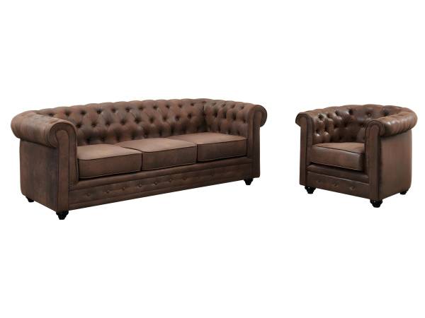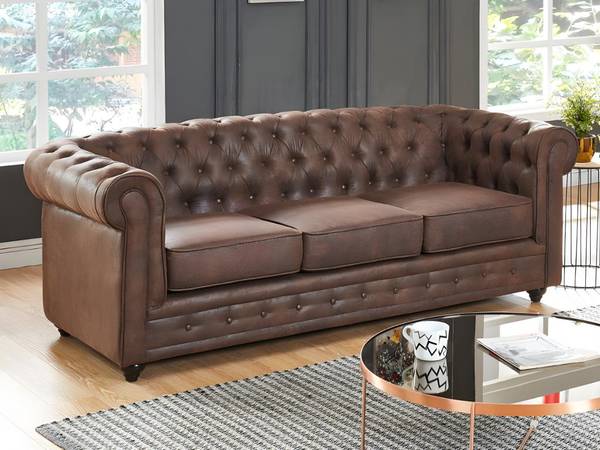 Sie sind auf der Suche nach einem Stück, das Ihrem Wohnraum noch fehlt? Entscheiden Sie sich für das Sofa CHESTERFIELD aus Mikrofaser in Antik-Optik, eine echte Hommage an den Vintage-Charme in Verbindung mit zeitgemäßem Komfort. Mit seiner klassischen Ästhetik und den gepolsterten Details verleiht dieses Sofa Ihrer Einrichtung einen Hauch von zeitloser Eleganz und bietet gleichzeitig eine kuschelige und einladende Sitzgelegenheit. Mikrofaser in Antik-Optik hat eine weiche und geschmeidige Textur, die das Aussehen von Antikleder nachahmt, ohne die damit verbundenen Nachteile bei der Pflege. Diese Materialwahl verleiht dem Sofa eine gemütliche Vintage-Dimension und schafft so eine behagliche Atmosphäre in Ihrem Wohnbereich.